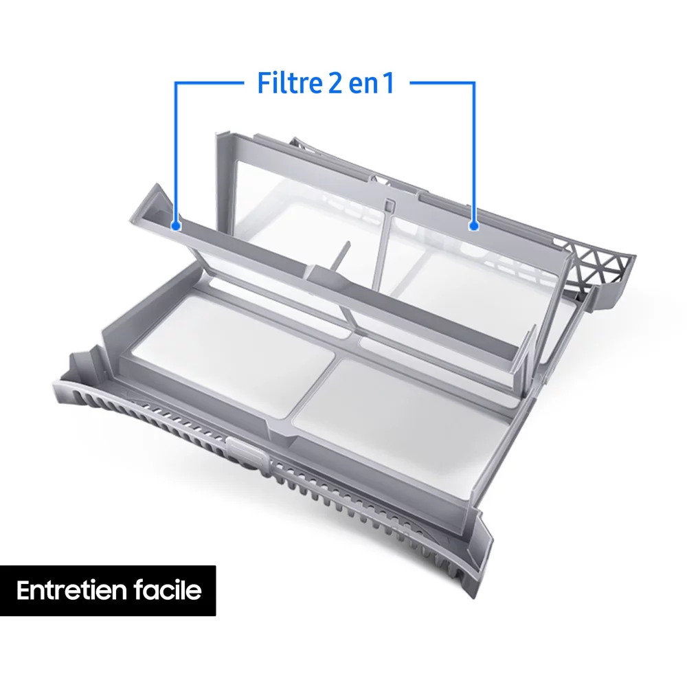 Le sèche-linge SAMSUNG DV90BB7445GWS3 Bespoke est doté d’un hublot extra-plat sans débord. Vous pouvez donc le positionner dans un espace restreint. Ce hublot est très pratique pour les petites buanderies, car il vous permet de gagner de la place sans compromettre la capacité de votre sèche-linge.