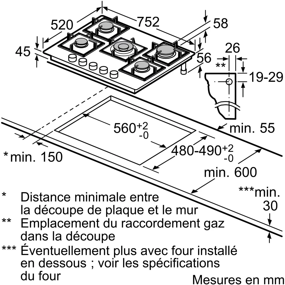 • LxHxP (encastrement) : 56.2 x 49.2 x 4.5 cm