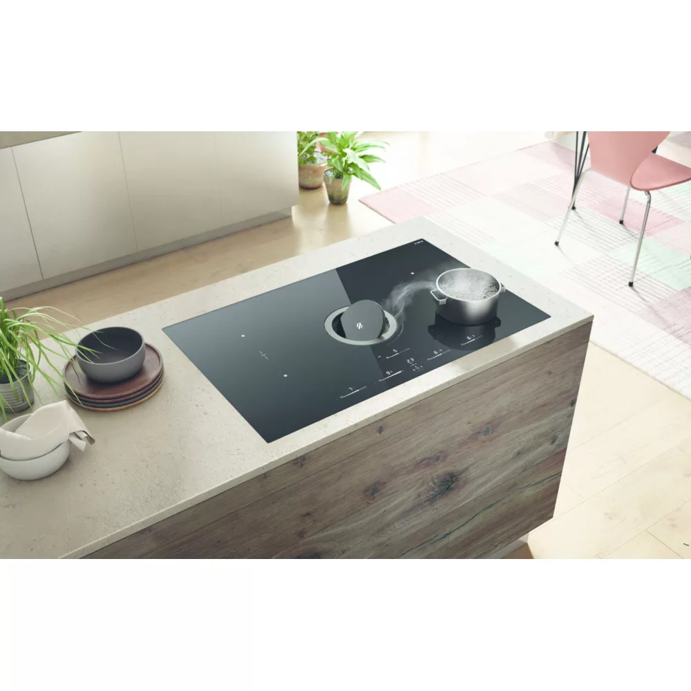 - Type de table : induction avec hotte intégrée, solution pratique et esthétique pour combiner la table de cuisson et la hotte. Elle nécessite un encastrement spécifique (voir infos dimensions).