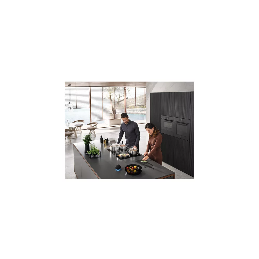 - Interconnexion table/hotte : Oui. Une fois la table de cuisson active, l’éclairage de la hotte compatible s’enclenche et règle la puissance d’aspiration en automatique.