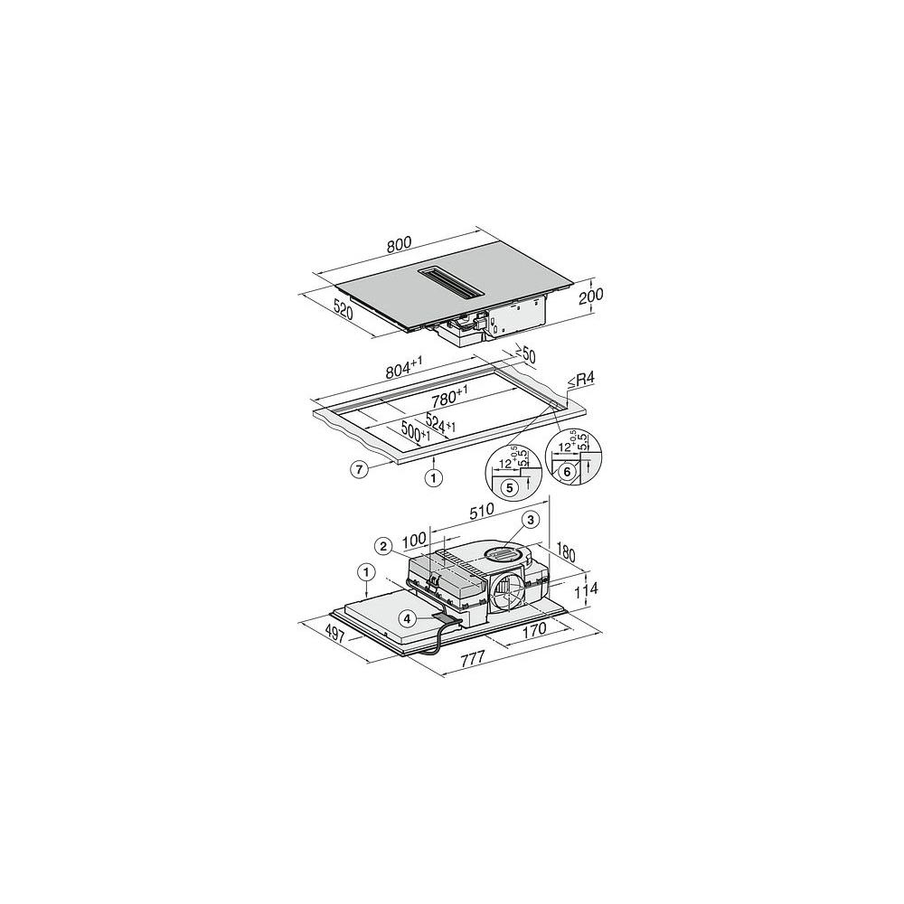 - Installation du kit recyclage sans gaine : permet une installation optimisée de votre table évitant ainsi l’utilisation de gaines et de coudes. L’extraction de l’air se fait directement dans le vide sanitaire de votre meuble.