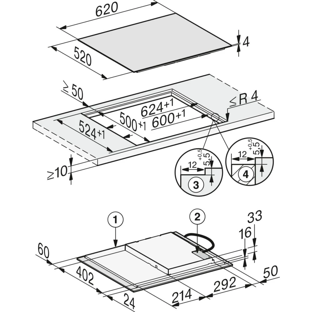- LxHxP (encastrement) : 60 x 5.3 x 50 cm