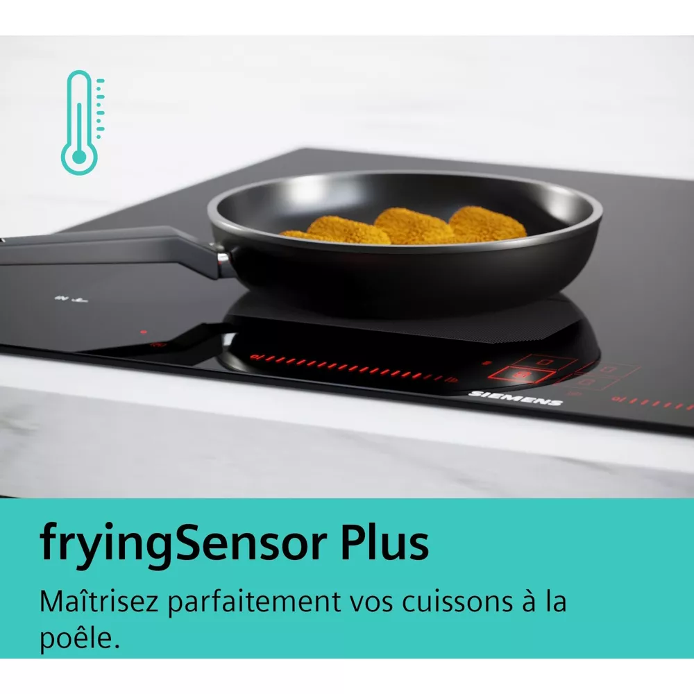 Mais ce n’est pas tout, car cette table Induction SIEMENS est aussi dotée du thermoSensor qui contrôle la température de la poêle pour éviter de brûler les aliments. PowerBoost et Timer sur chaque foyer sont également là pour vous aider à réaliser de bons petits plats pour toute la famille.