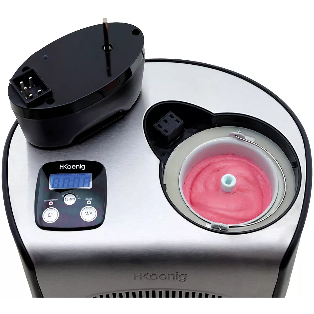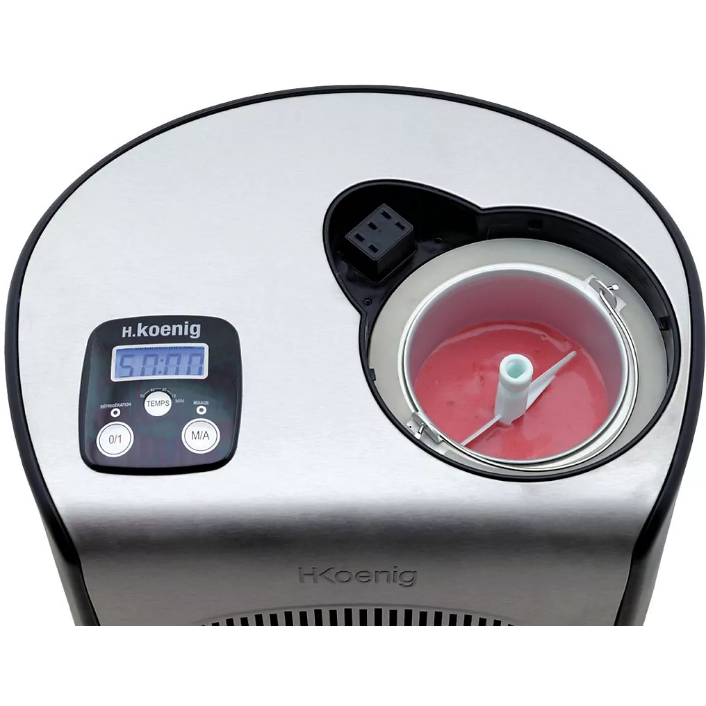 La turbine à glace réfrigérante HF250 de H.Koenig vous permet de savourer de délicieux sorbets et crèmes glacées en moins de 50 minutes.
